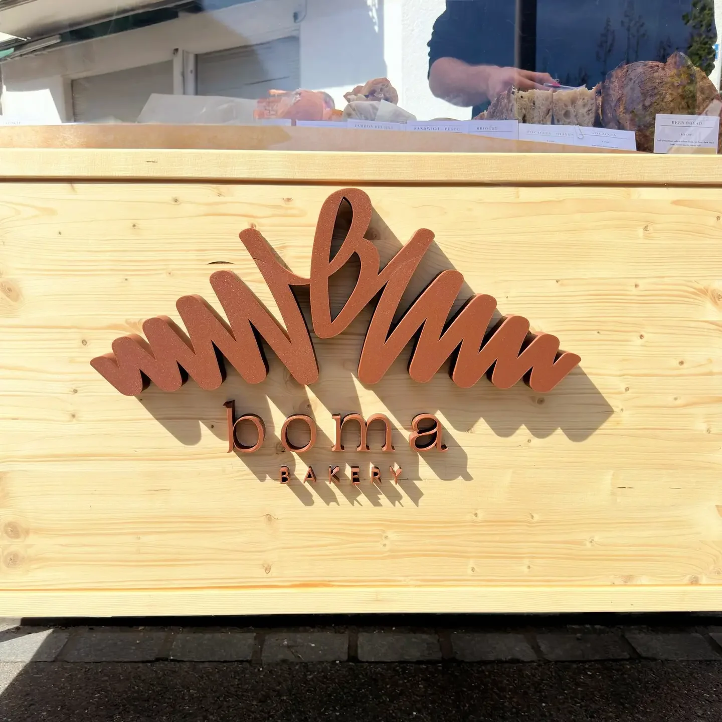 Unser wetterfestes 3D-Logo bringt das Handwerk der Schweizer Bäckerei BoMa perfekt zur Geltung – direkt am Verkaufsstand, sichtbar bei jedem Wetter.