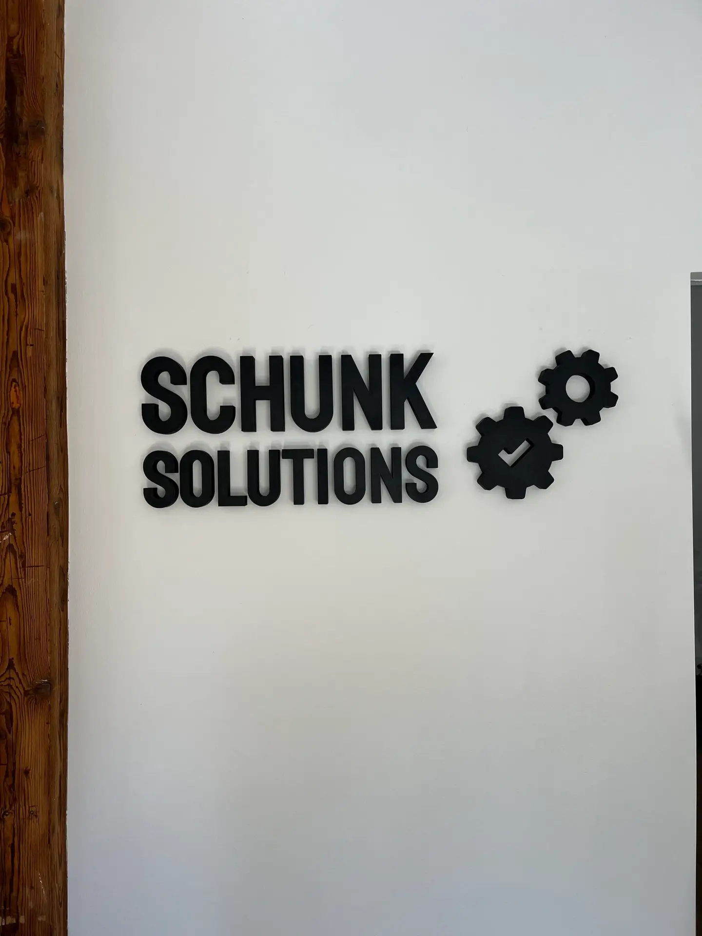 Das 3D-Wandlogo für Schunk Solutions verbindet präzise Fertigung mit stilvollem Design – perfekt für ein modernes IT-Unternehmen.