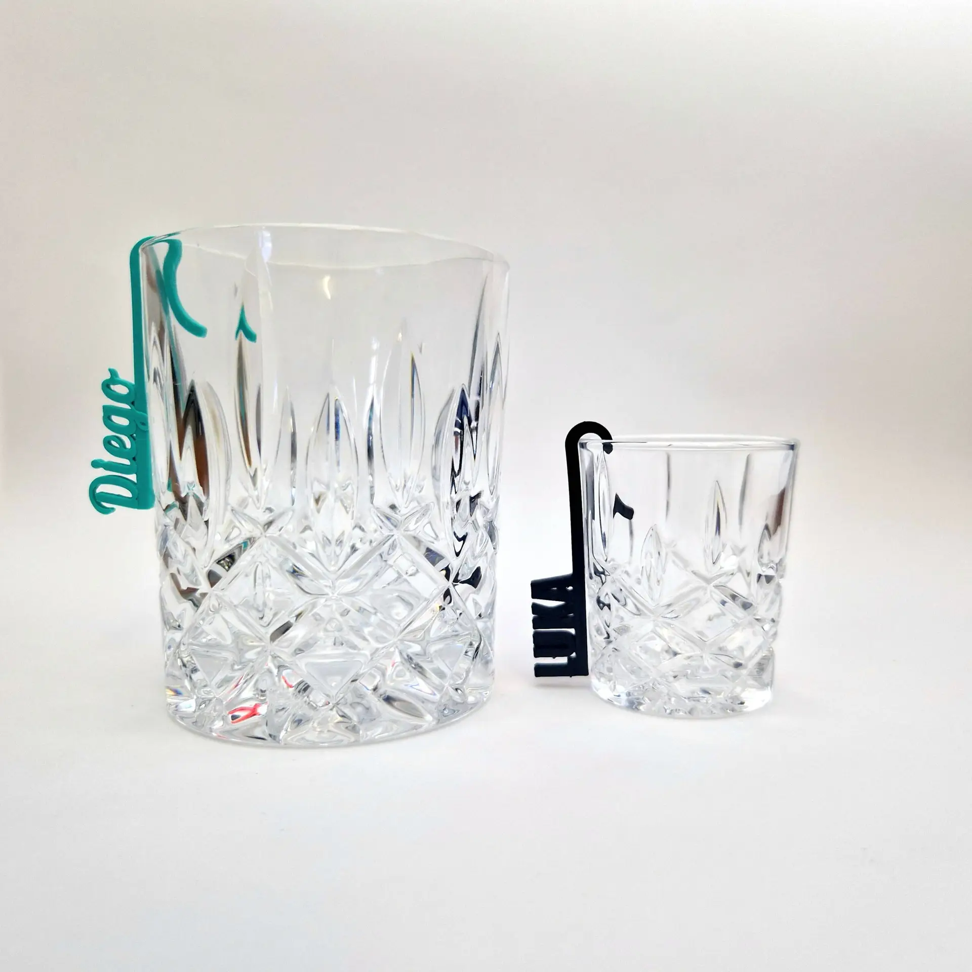 • Größe: ca. 6–8 cm breit (je nach Name), passend für Standard-Glasränder