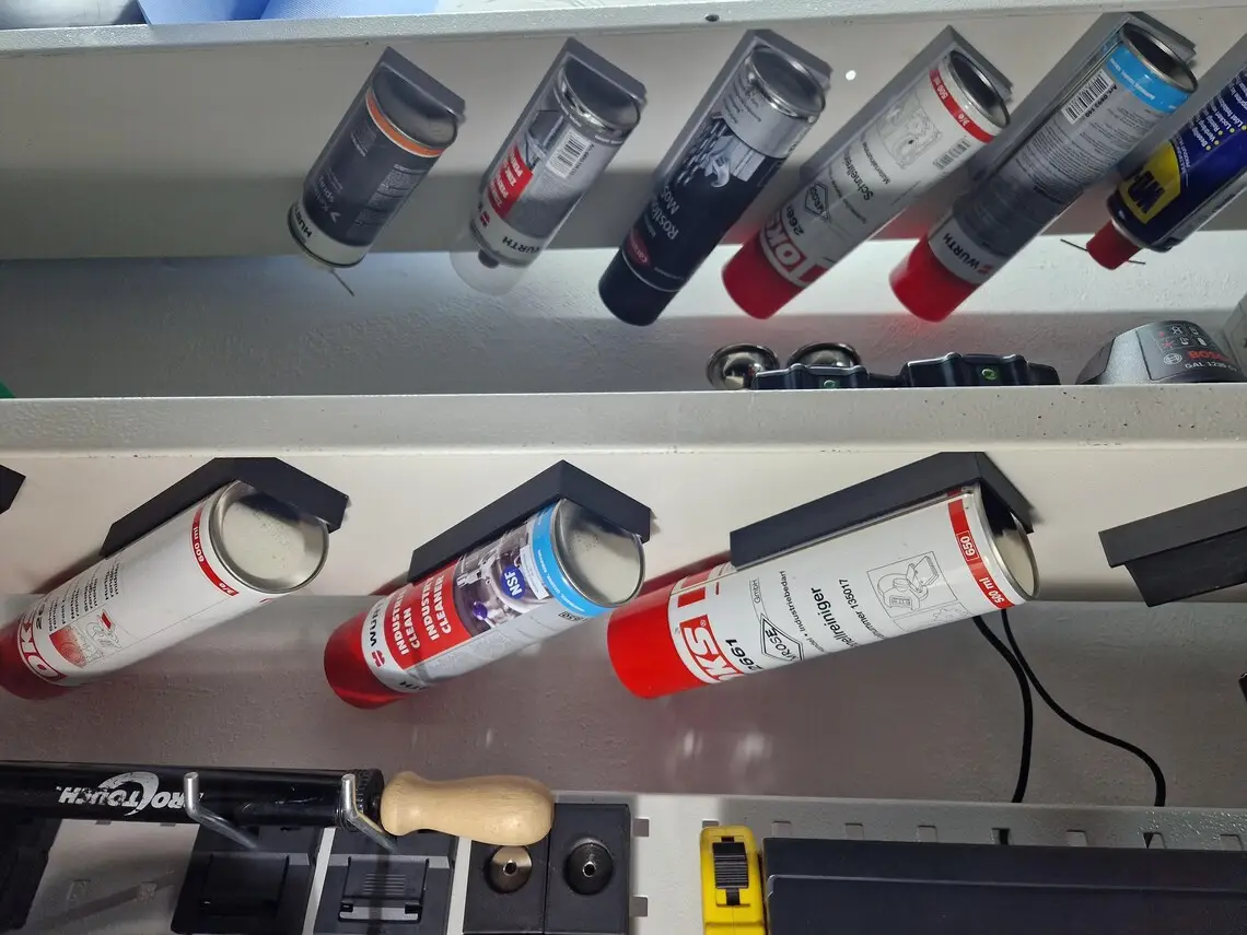 Perfekte Organisation für mehrere Spraydosen, spart wertvollen Platz und sorgt für Ordnung.